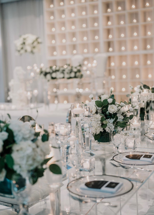 Sarah’s celebration was filled with warmth, glow, and timeless beauty. Her vision came to life through a stunning candle wall, soft white fresh florals, and fresh greenery, all illuminated by countless candles throughout the space. The result was an atmosphere that felt intimate, romantic, and unforgettable